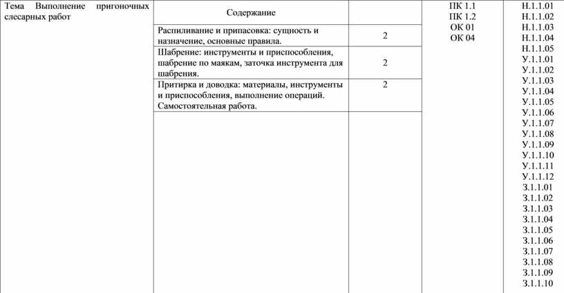 ПК 1.3. Выполнять пригоночные слесарные операции при изготовлении деталей приспособлений, режущего и измерительного инструмента в соответствии с производственным заданием с соблюдением требований охраны труда.