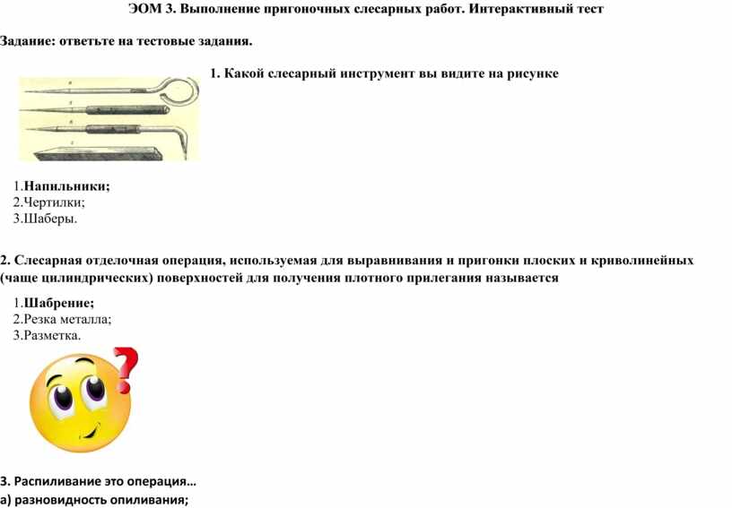 ЭОМ 3. Выполнение пригоночных слесарных работ. Интерактивный тест Задание: ответьте на тестовые задания. 1. Какой слесарный инструмент вы видите на рисунке