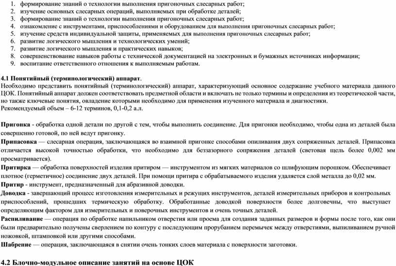 4.2 Блочно-модульное описание занятий на основе ЦОК