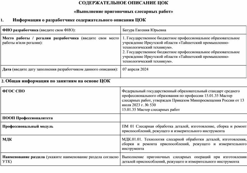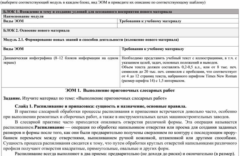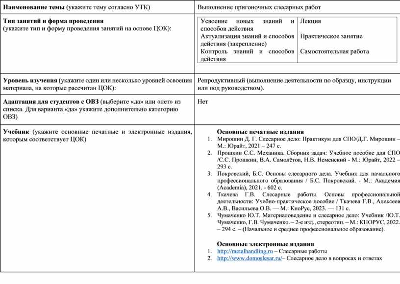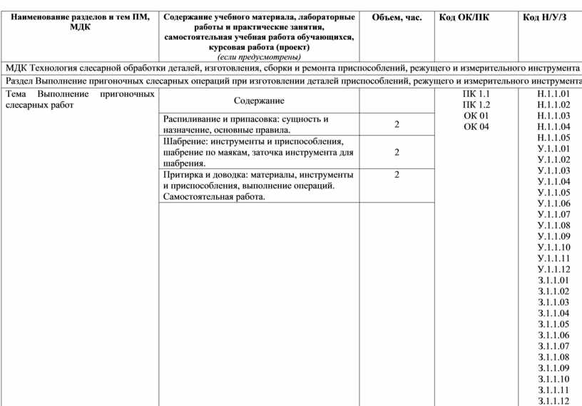 ПМ 01 Слесарная обработка деталей, изготовление, сборка и ремонт приспособлений, режущего и измерительного инструмента |