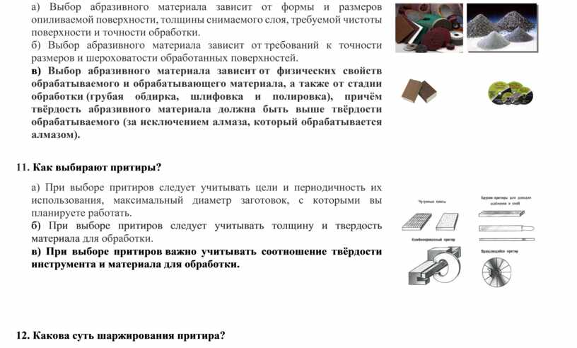 10. От чего зависит выбор абразивного материала при притирке и доводке?