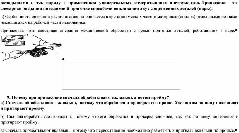 9. Почему при припасовке сначала обрабатывают вкладыш, а потом пройму?