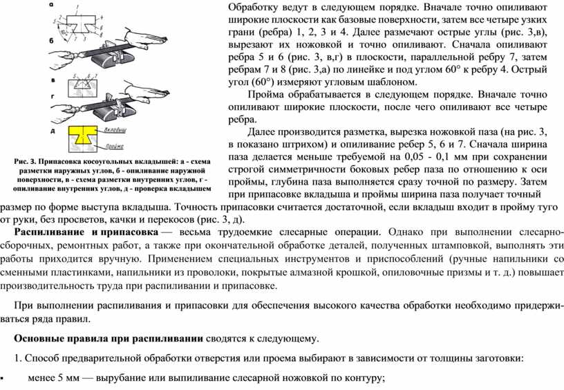 Распиливание и припасовка: сущность и назначение, основные правила. |