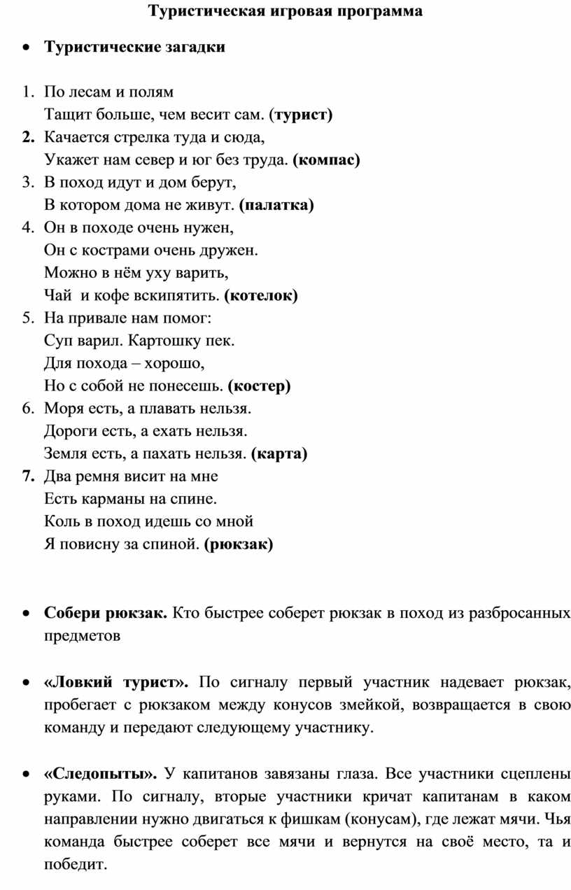 · «Ловкий турист». По сигналу первый участник надевает рюкзак, пробегает с рюкзаком между конусов змейкой, возвращается в свою команду и передают следующему участнику.