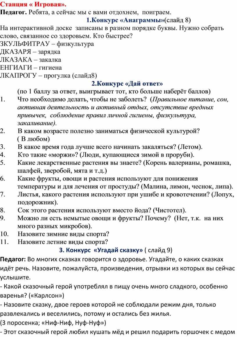 Педагог: Во многих сказках говорится о здоровье. Угадайте, о каких сказках идёт