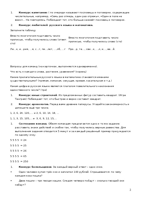 выполнения задания отводится 5 минут и за каждый решённый пример присуждается