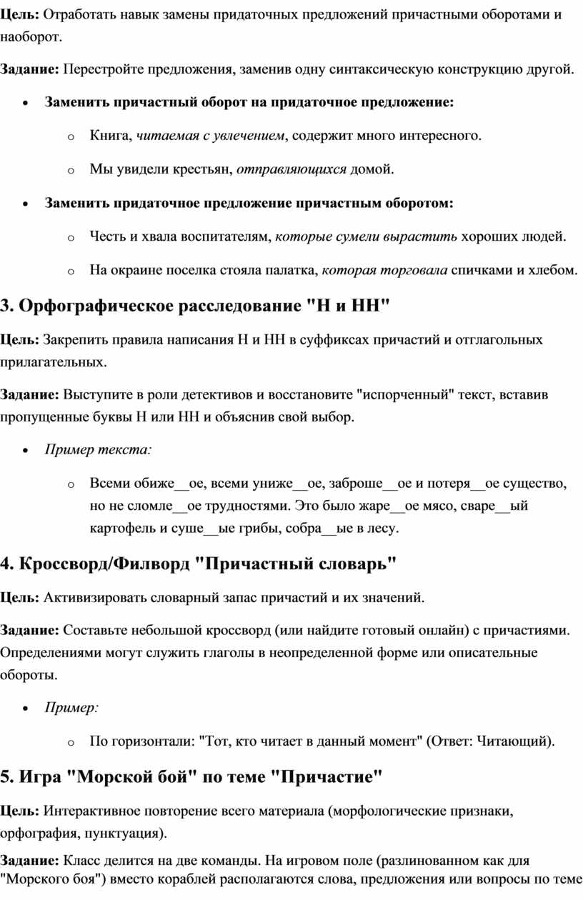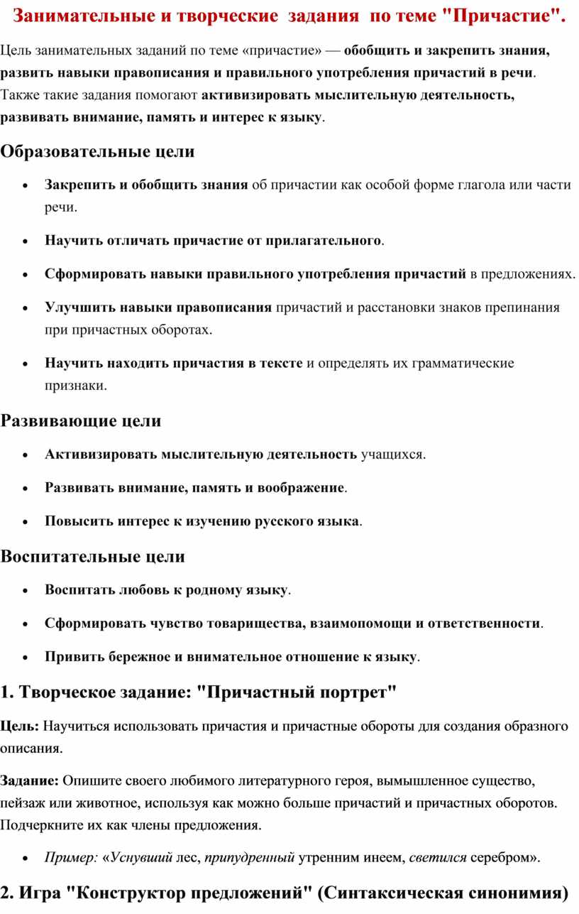 заданий по теме «причастие» — обобщить и закрепить знания, развить