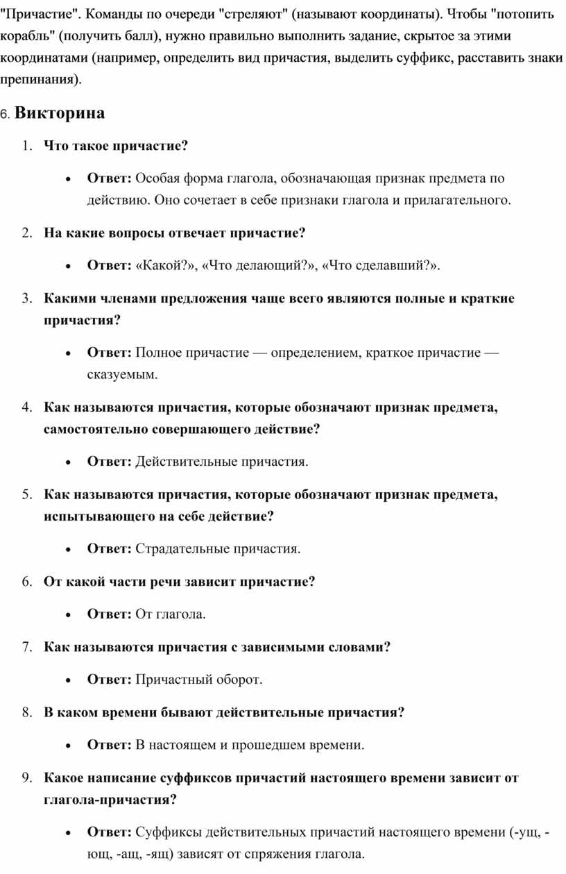 предложения или вопросы по теме "Причастие". Команды по очереди