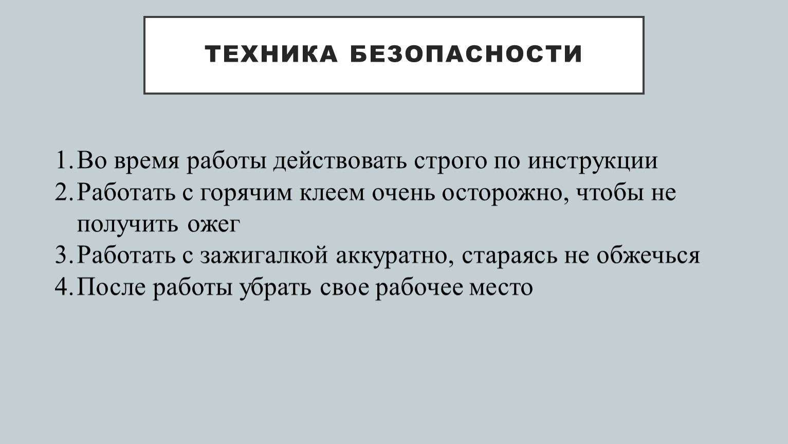 Работать с горячим клеем очень осторожно, чтобы не получить ожег