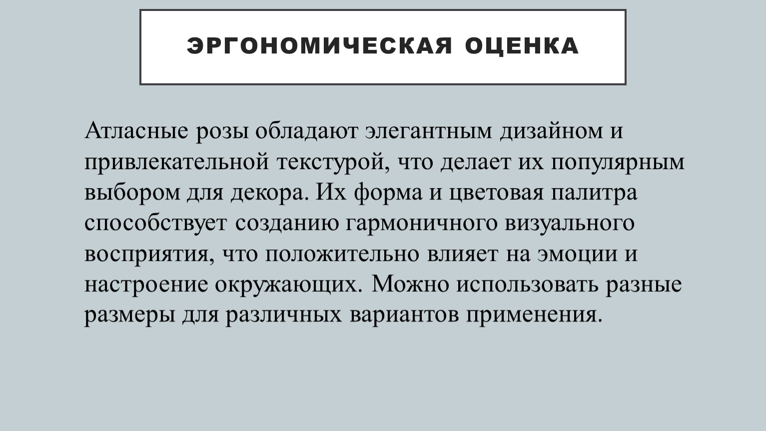 Атласные розы обладают элегантным дизайном и привлекательной текстурой, что делает их популярным выбором для декора. Их форма и цветовая палитра способствует созданию гармоничного визуального восприятия, что положительно влияет на эмоции и настроение окружающих. Можно использовать разные размеры для различных вариантов применения.