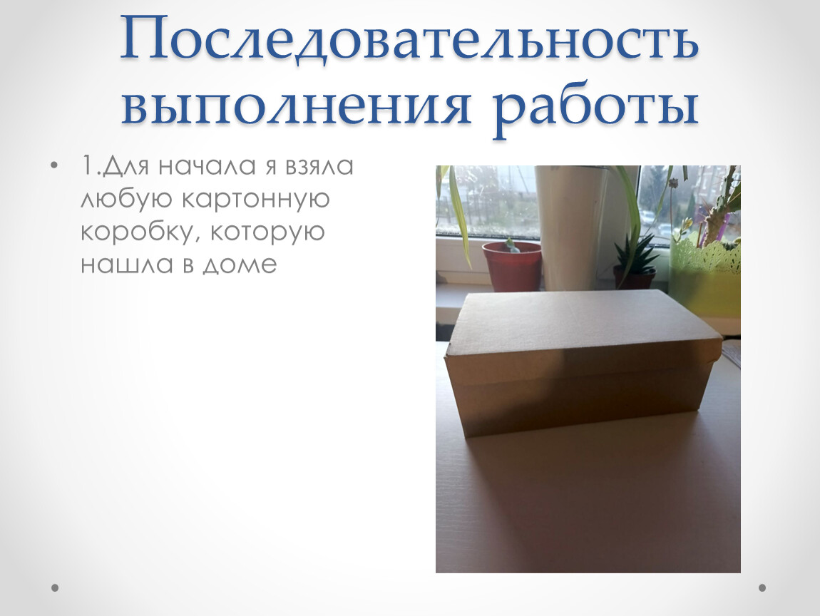 1.Для начала я взяла любую картонную коробку, которую нашла в доме