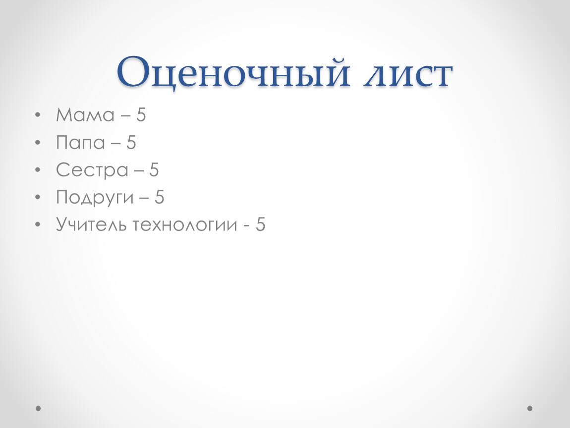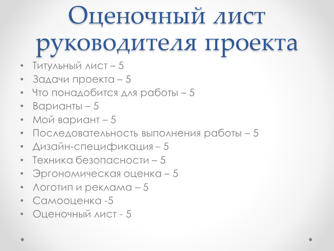 Оценить свои возможности глубины и прочности знаний, полученных на уроках технологии, умение их применять в области проектной деятельности.