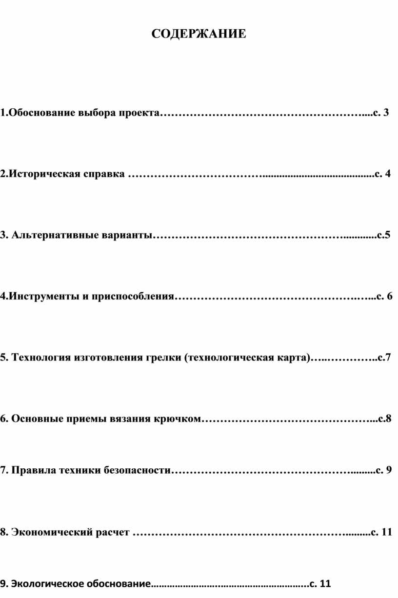 9. Экологическое обоснование……………………..…………………………...с. 11