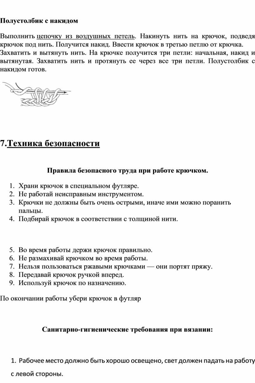 Правила безопасного труда при работе крючком.