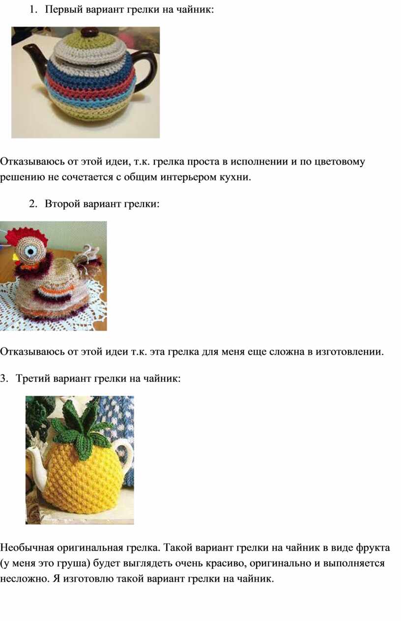 1. Первый вариант грелки на чайник: