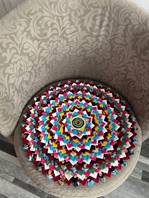 Я решила сшить коврики-кругляши, которые можно использовать как украшение в интерьере дома, как накидку для пуфиков и кресел, коврик для собаки, кошки, как подарок на любой праздник.