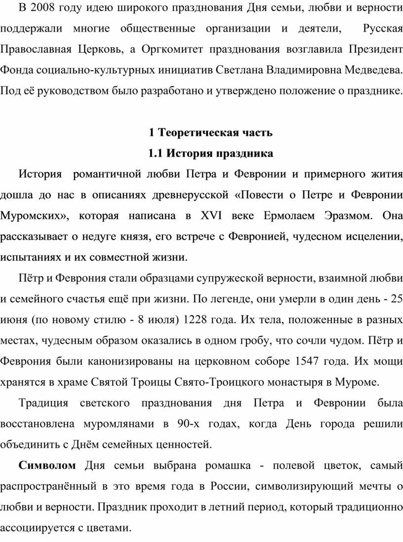 Изучив литературу по теме, мя узнала, что идея праздника возникла у жителей города Мурома (Владимирской области) и имеет символическое значение.