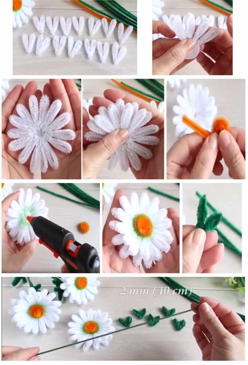И только потом приступила к изготовлению ромашек и вазы для цветов.
