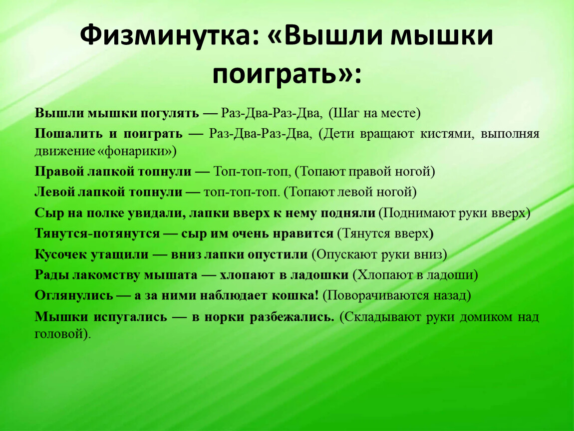 Вышли мышки погулять — Раз-Два-Раз-Два, (Шаг на месте)