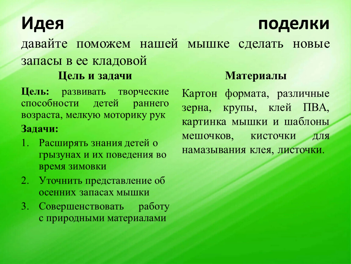 Идея поделкидавайте поможем нашей мышке сделать новые запасы в ее кладовой