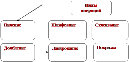 При изготовлении изделии «Полку для ключей и телефона» применяю следующие виды технологических операций - диаграмма 4: