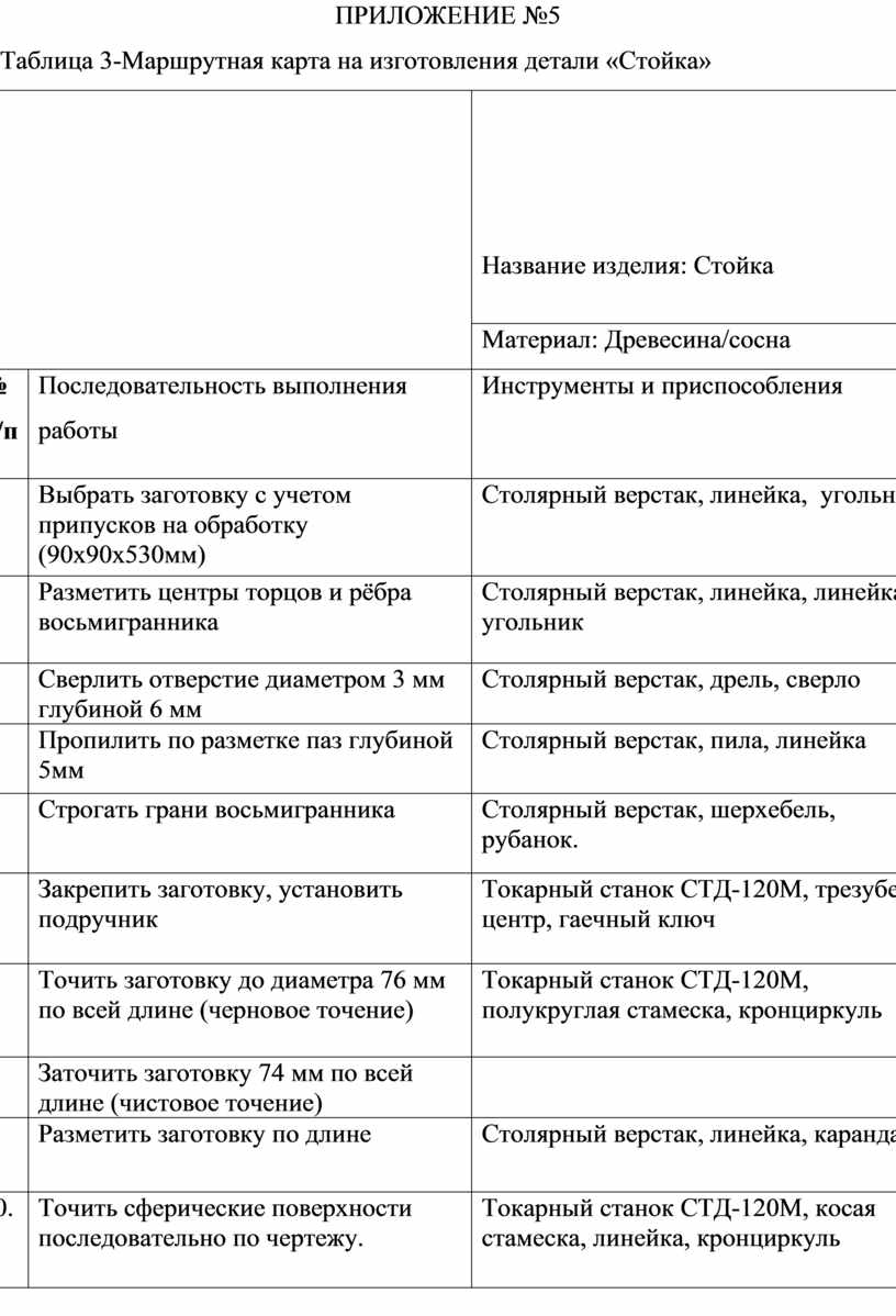 Поэтапное изготовление детали «Стойка» и применение инструментов и оборудований показано в маршрутной карте. (см. в Приложение №5).
