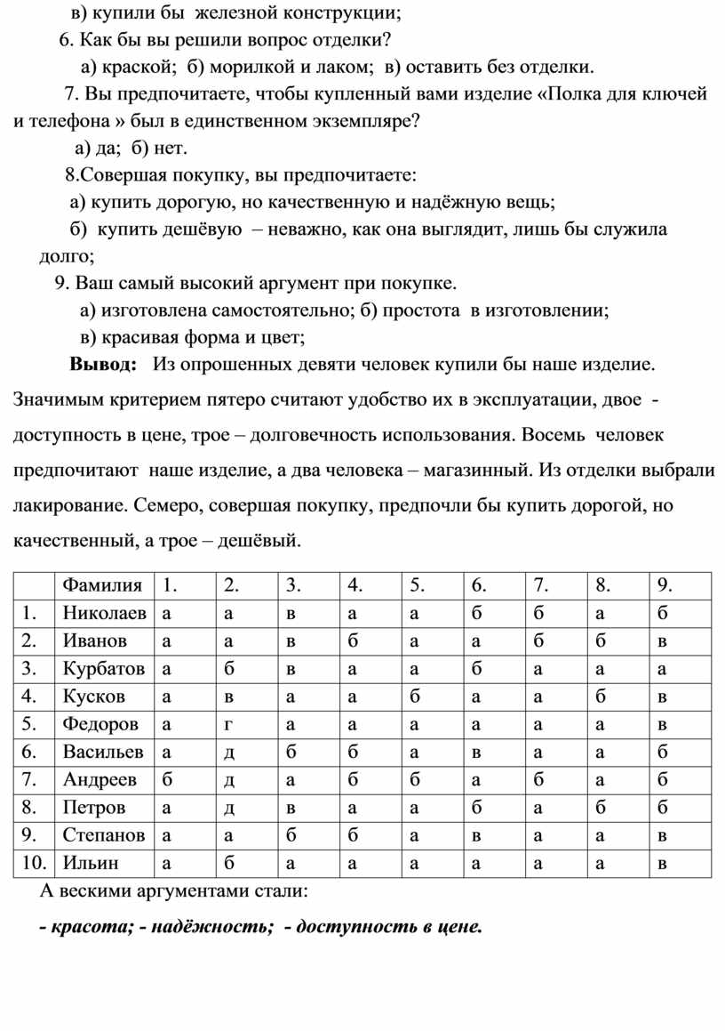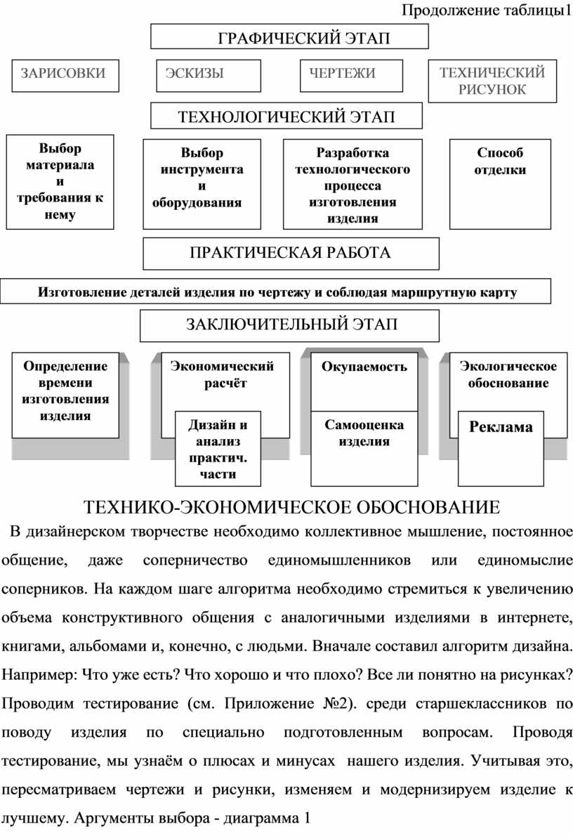 В дизайнерском творчестве необходимо коллективное мышление, постоянное общение, даже соперничество единомышленников или единомыслие соперников. На каждом шаге алгоритма необходимо стремиться к увеличению объема конструктивного общения с аналогичными изделиями в интернете, книгами, альбомами и, конечно, с людьми. Вначале составил алгоритм дизайна. Например: Что уже есть? Что хорошо и что плохо? Все ли понятно на рисунках? Проводим тестирование (см. Приложение №2). среди старшеклассников по поводу изделия по специально подготовленным вопросам. Проводя тестирование, мы узнаём о плюсах и минусах нашего изделия. Учитывая это, пересматриваем чертежи и рисунки, изменяем и модернизируем изделие к лучшему. Аргументы выбора - диаграмма 1