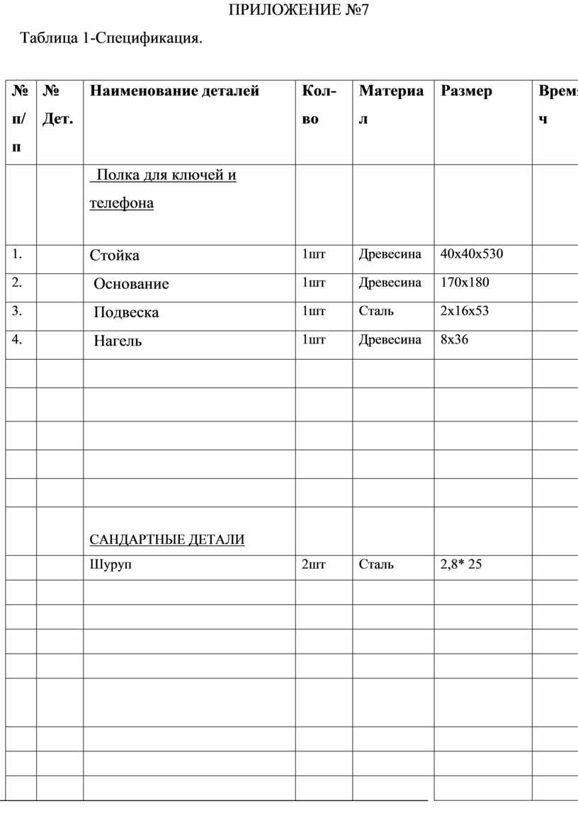 Последовательность изготовления изделия: «Стойка полки».