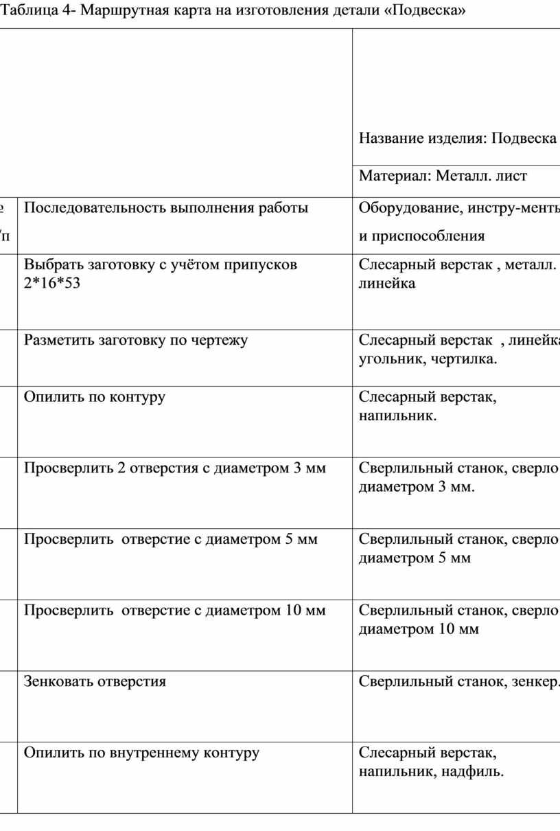 Таблица 4- Маршрутная карта на изготовления детали «Подвеска»