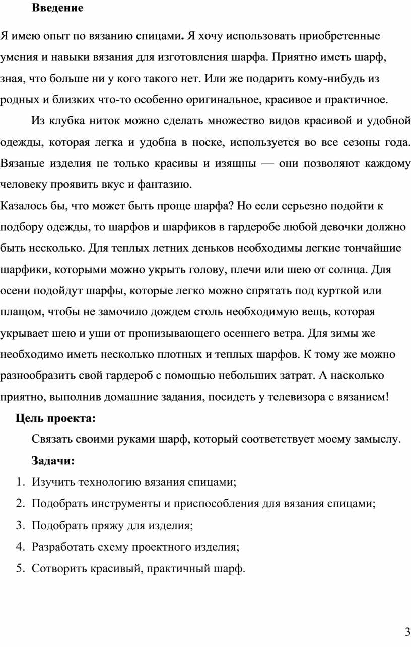 1. Изучить технологию вязания спицами;