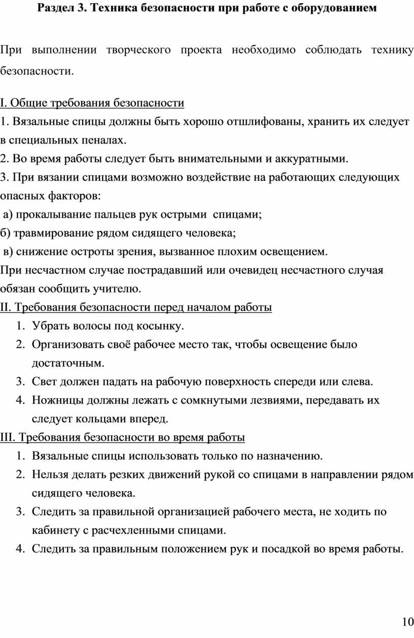 Раздел 3. Техника безопасности при работе со спицами………………10