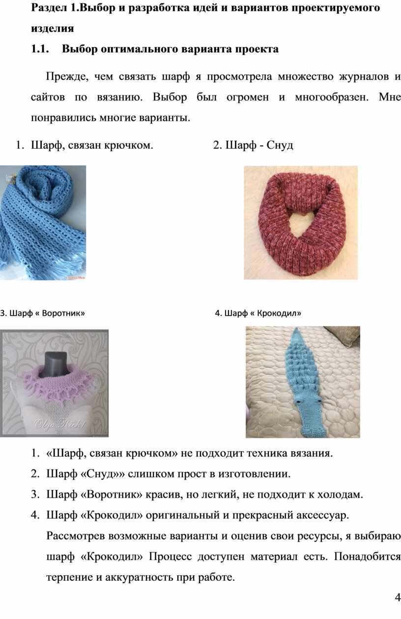 3. Шарф « Воротник» 4. Шарф « Крокодил»