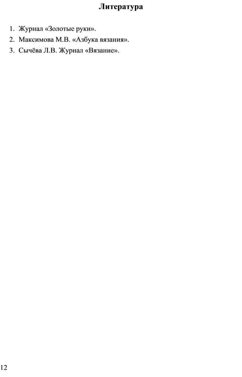 3. Сычёва Л.В. Журнал «Вязание».