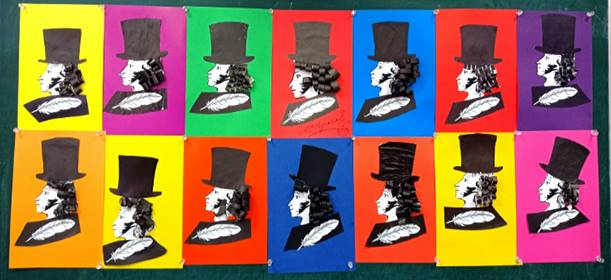 - изготовление оригинальных аппликаций с изображением А. С. Пушкина из бумаги,