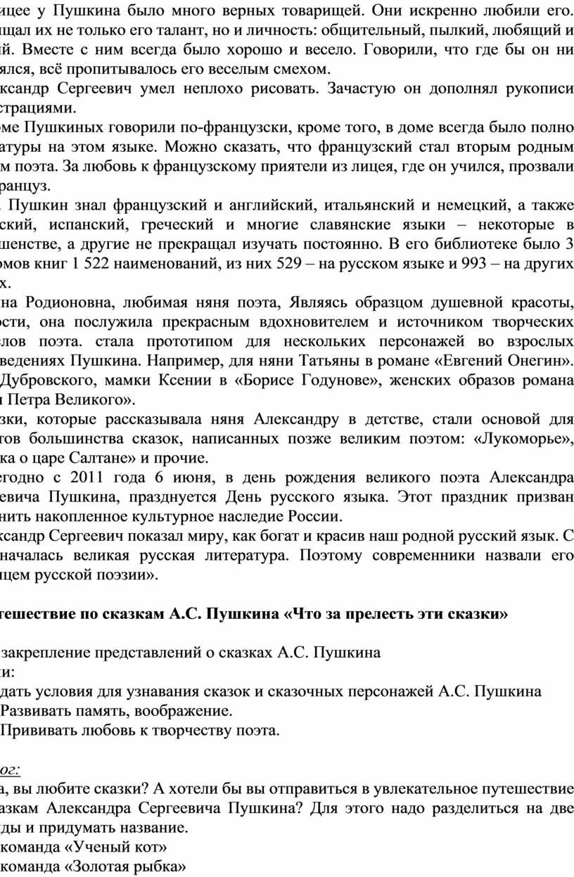 Сценарий воспитательного мероприятия «У Лукоморья»