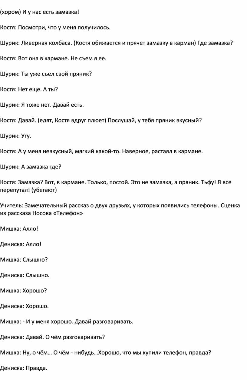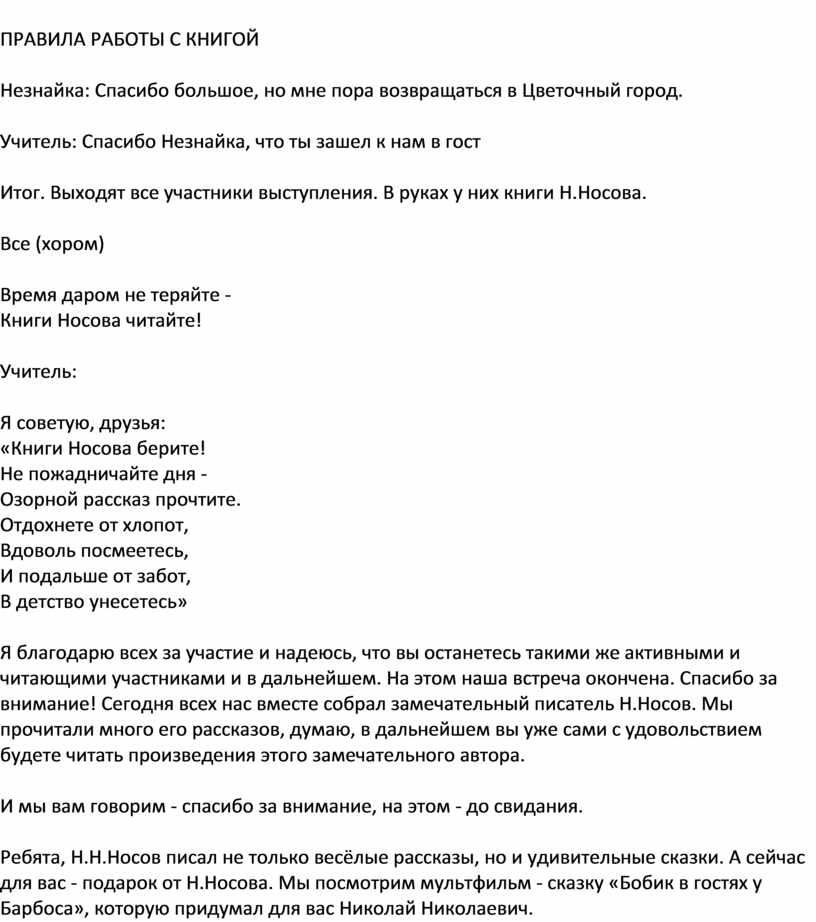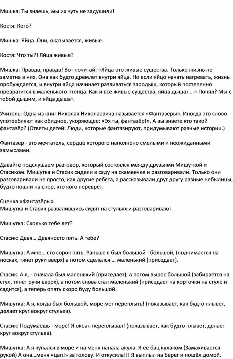 Учитель: Сегодня всех нас вместе собрал замечательный писатель Н.Носов. Мы прочитали много его рассказов, думаю, в дальнейшем вы уже сами с удовольствием будете читать произведения этого автора.