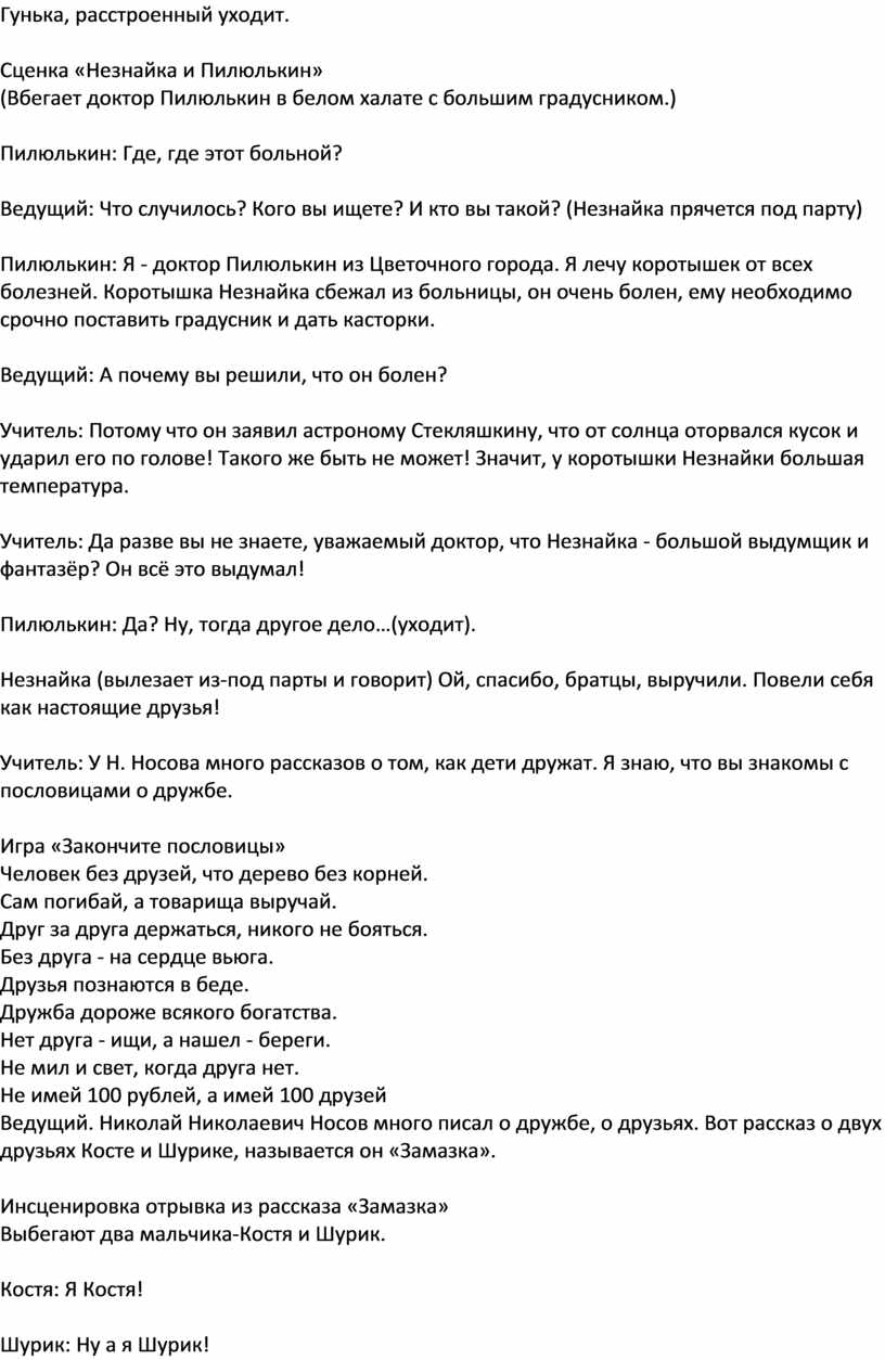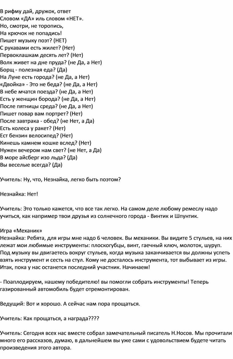 Учитель: Спасибо Незнайка, что ты зашел к нам в гост