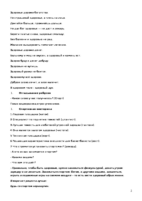 А теперь давайте вспомним пословицы о здоровье.Отгадывание ребусов