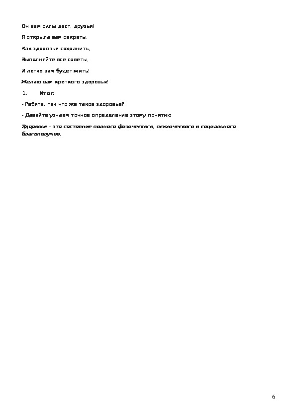 Ребята! Вы сегодня особенно красивы, и мне хочется, чтобы эта красота осталась у вас надолго. Для этого надо сохранить свое здоровье.