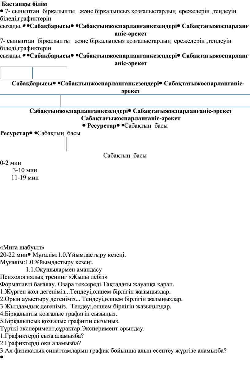 Сабақтың басы 0-2 мин 3-10 мин 11-19 мин