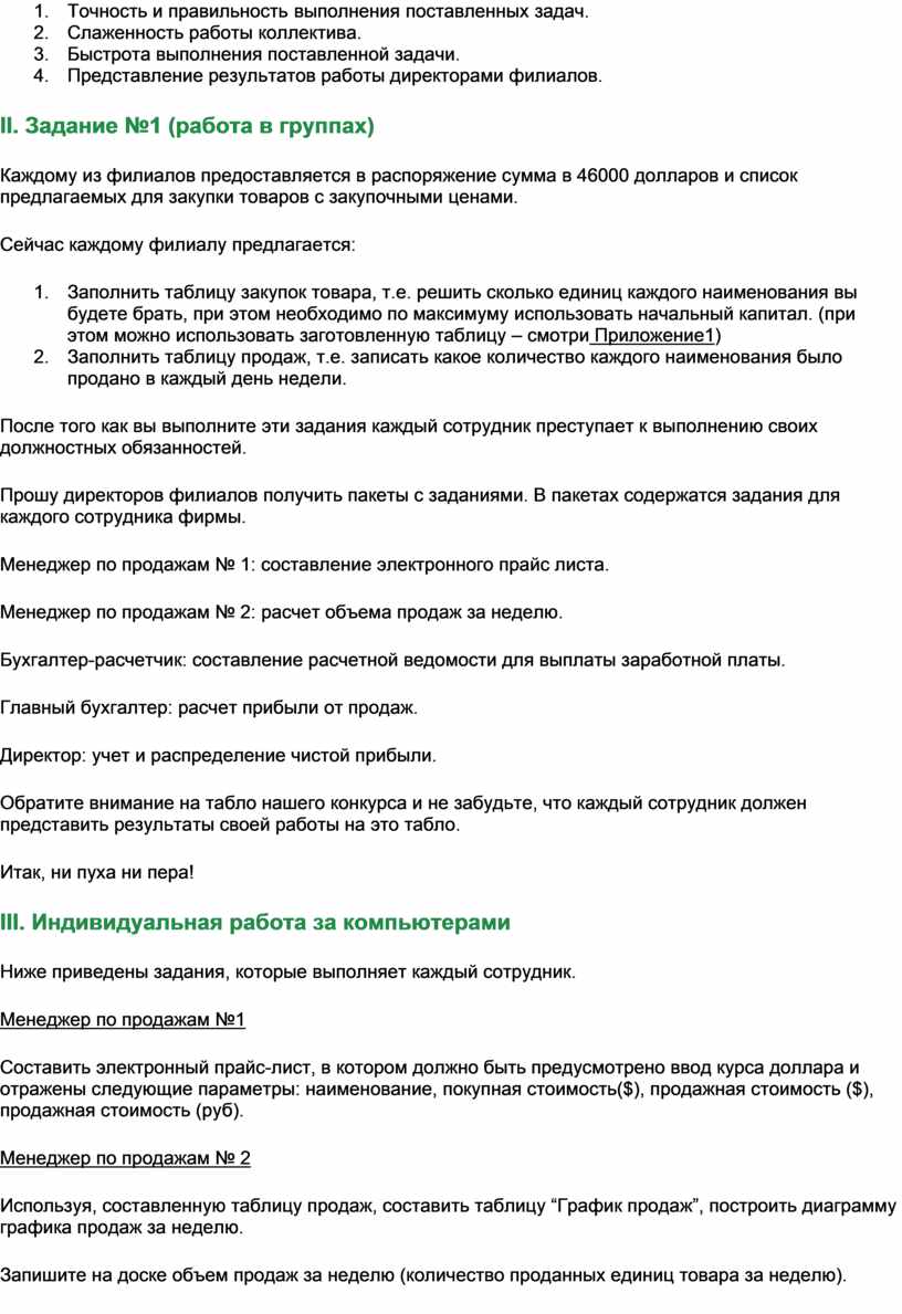После того как вы выполните эти задания каждый сотрудник преступает к выполнению своих должностных обязанностей.