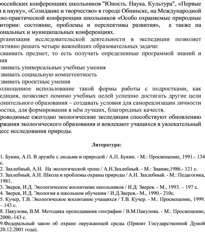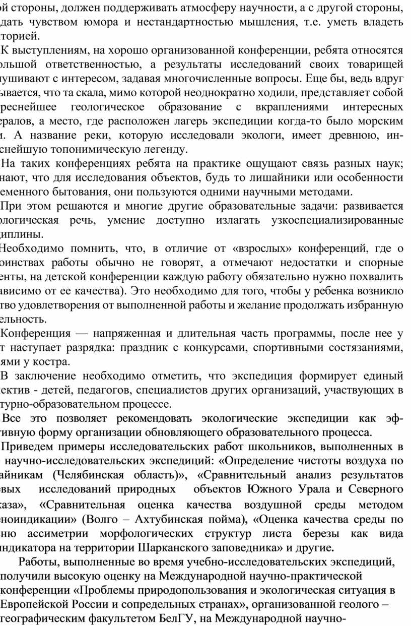 Все это позволяет рекомендовать экологические экспедиции как эффективную форму организации обновляющего образовательного процесса.