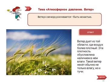 Материал "Физика в народных приметах" можно использовать как на уроках, так и во внеурочной деятельности для учащихся 8-9 классов в форме игры-соревнования. Мероприятие приобщает учащихся к народной мудрости в виде примет о погоде, формирует научное мышление. Народные приметы распределены по темам, поэтому их удобно использовать на уроках для формирования мотивации. При использовании презентации во внеклассной работе в форме игры-соревнования: Класс делится на команды, в которых обсуждается ответ, затем озвучивается и проверяется. За правильный ответ 1 балл. Выбирают задания по очереди. Выигрывает команда, набравшая максимальное количество баллов.