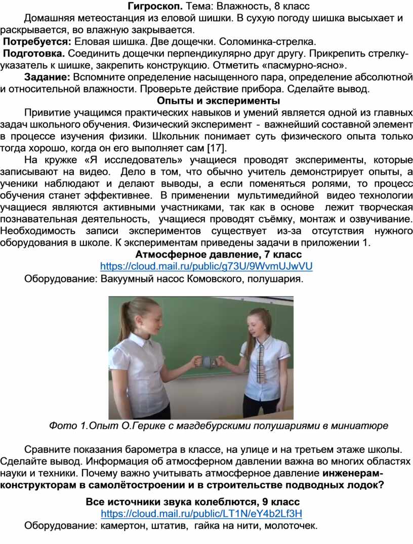 1. Изготовление приборов по физике своими руками;