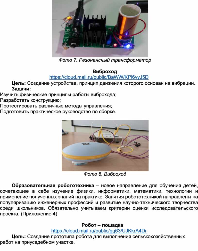 Образовательная робототехника – новое направление для обучения детей, сочетающее в себе изучение физики, информатики, математики, технологии и применение полученных знаний на практике. Занятия робототехникой направлены на популяризацию инженерных профессий и развитие научно-технического творчества среди школьников. Обязательно учитываем критерии оценки исследовательского проекта. (Приложение 4)