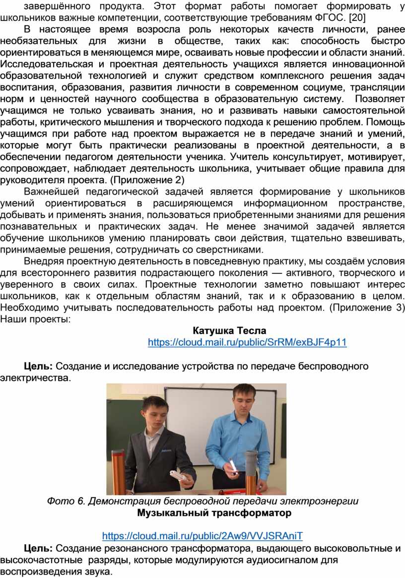 В настоящее время возросла роль некоторых качеств личности, ранее необязательных для жизни в обществе, таких как: способность быстро ориентироваться в меняющемся мире, осваивать новые профессии и области знаний. Исследовательская и проектная деятельность учащихся является инновационной образовательной технологией и служит средством комплексного решения задач воспитания, образования, развития личности в современном социуме, трансляции норм и ценностей научного сообщества в образовательную систему. Позволяет учащимся не только усваивать знания, но и развивать навыки самостоятельной работы, критического мышления и творческого подхода к решению проблем. Помощь учащимся при работе над проектом выражается не в передаче знаний и умений, которые могут быть практически реализованы в проектной деятельности, а в обеспечении педагогом деятельности ученика. Учитель консультирует, мотивирует, сопровождает, наблюдает деятельность школьника, учитывает общие правила для руководителя проекта. (Приложение 2)