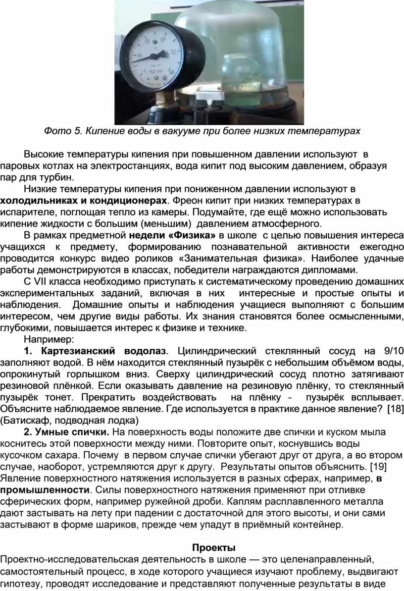 Кипение воды при давлении ниже атмосферного, 8 класс