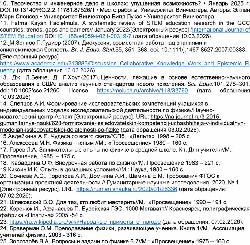 13. Дж. Л.Бенче, Д. Г.Хоуг (2017). Ценности, лежащие в основе естественно-научного образования в США: анализ научных стандартов нового поколения. Sci. Educ.101, 278–301. doi: 10.1002/sce.21260 License https://moluch.ru/archive/118/32790 (дата обращения 10.03.2026)