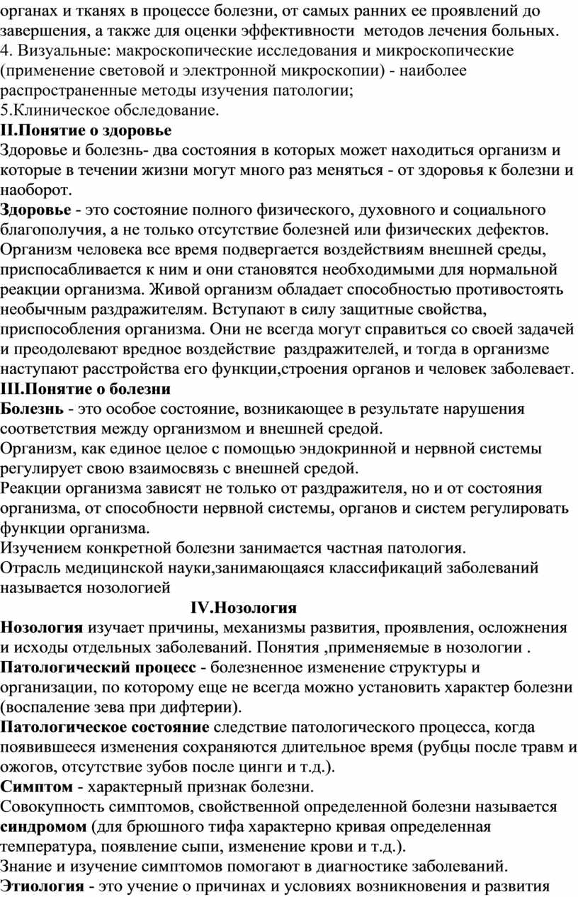I. Патология - как наука. II. Понятие о здоровье. III. Общее понятие о болезни. IV. Понятие о нозологии.