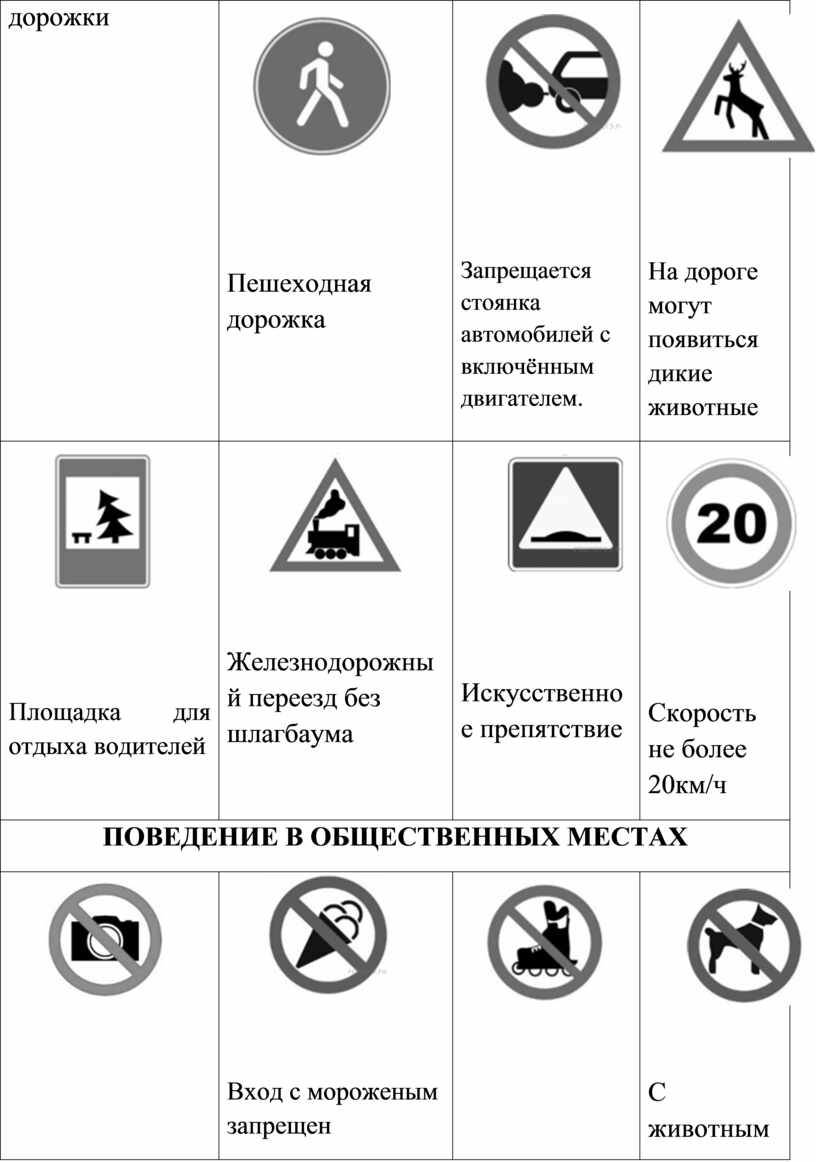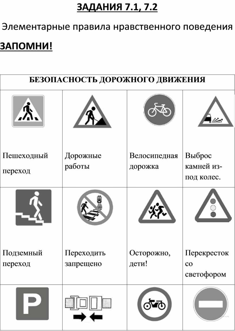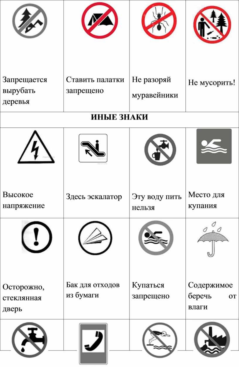 Закрой надписи листом бумаги и назови знаки. Постарайся объяснить в каких местах их можно встретить, что они отражают.